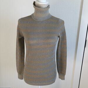 J Crew Silver and Gold Striped Turtleneck Sweater - XXS