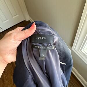 Details: J. Crew Single-Breasted Long Sleeve Lined Casual Blazer - Size: 0 Petite- Color: Black- Material: 58% Cotton, 28% Viscose, 4% Elastane- Features: Long sleeve, single-breasted, ventless, pockets, dry clean, stretch cotton, lined, comfort, breathable, casual.