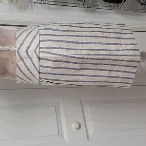 J Crew Size 0, 100% Linen Crossover / Wrap, Asymmetrical Blue Striped Skirt, EUC