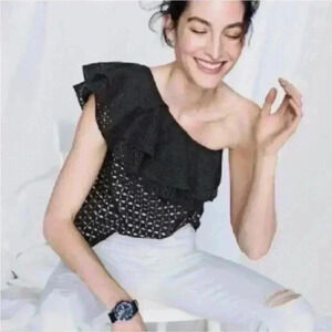 J. Crew Size 0 One Shoulder Eyelet Black Ruffle Top Style