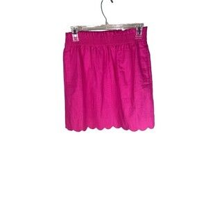 J. Crew Size 0 Scalloped Sidewalk Skirt Pink Linen Cotton Blend Lined