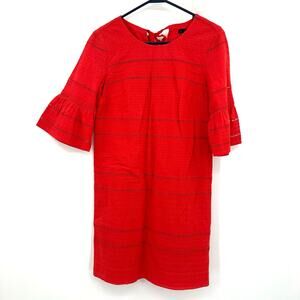 J Crew Size 0 Tunic Red Stripe Bell Ruffle Sleeve Open Keyhole Tie Back Workwear