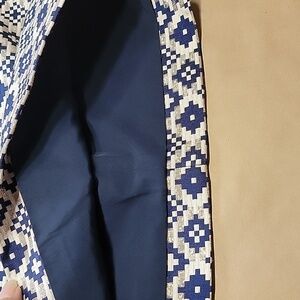 J. Crew Size 2 Blue, White, Metallic Taupe Geometric Pattern Pencil Skirt, EUC