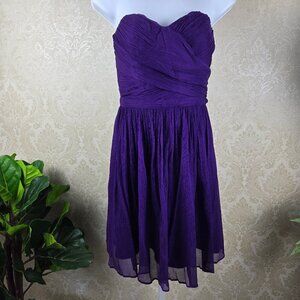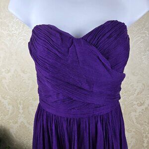 J Crew Size 4 Strapless Purple Dress 100% Silk Sweetheart Neckline Faux Wrap Top