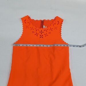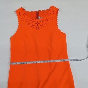 J. Crew Size 6 Neon Orange Knee-Length Sheath Dress with Floral Cut Outs on Hems