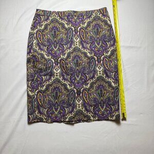 J. Crew | Size 6 | No. 2 Pencil Skirt in Purple, Tan, Yellow, Green Paisley