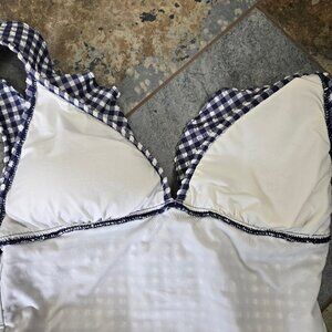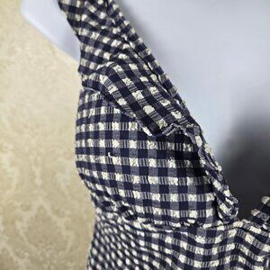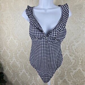 J Crew Size 8 Blue White Gingham Check One Piece Swimsuit Adj Ruffle Straps