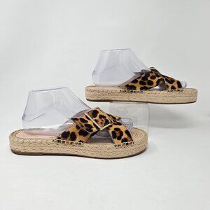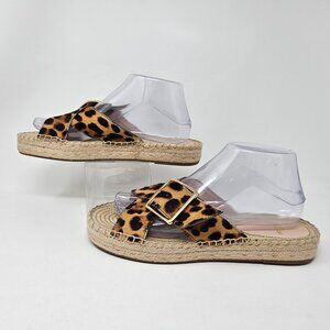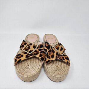 J. Crew Size 9 Thick Cross Strap Leopard Calf Hair Platform Espadrilles Sandals