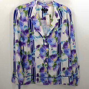 J Crew Size M Pajama Style Long Sleeve Stripe Floral Print Button Down Top