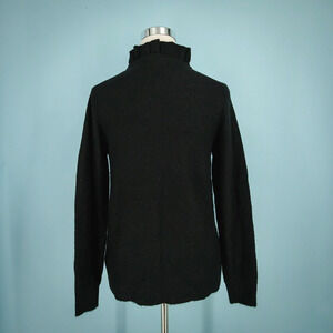 J. Crew Size Medium M Black Mock Ruffle Neck Long Sleeve Knit Pullover Sweater
