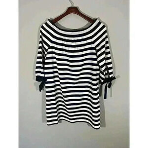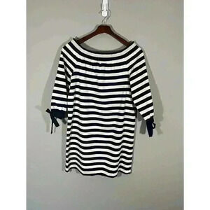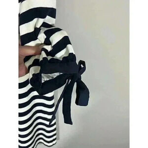 This is an adorable J Crew mini dress with navy/white stripes, 3/4 length sleeves with cute ties.