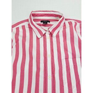 J. Crew Size Medium Womens Red White Stripe Long Sleeve Cotton Pocket Shirt