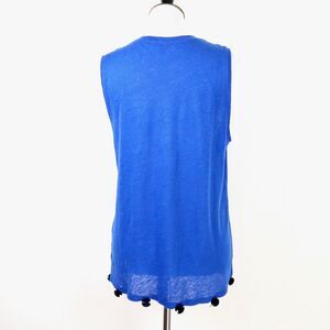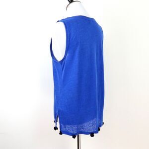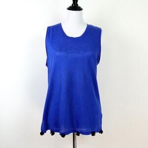 J Crew Size S Linen Jersey Knit Tank Pom Pom Hem Cobalt Blue