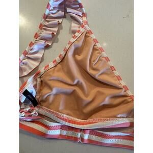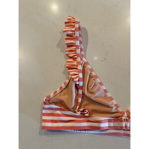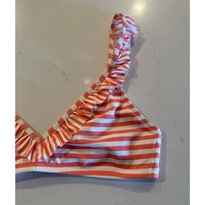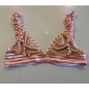 J Crew Size Small Striped Bikini Top Ruffle Trim Preppy Retro Resort