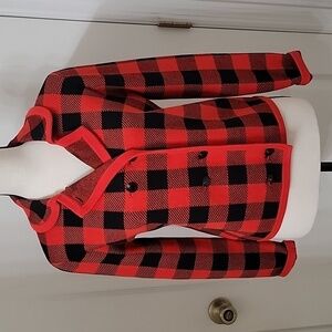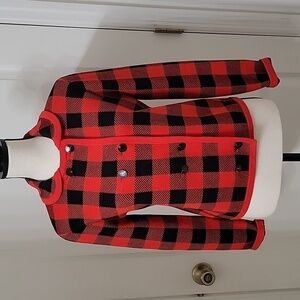 J. Crew Size Unknown Red & Black Buffalo Check / Plaid Double Breasted Cardigan