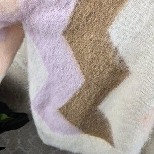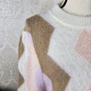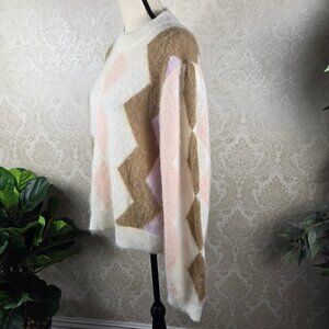J Crew Size XL Pullover Sweater Cream Pink Brwn Argyle Chevron Alpaca/Wool Blend