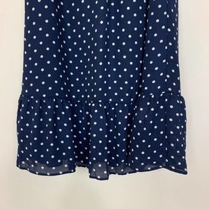 J Crew Size XS Printed Polka Dot Flutter Sleeve Dress Navy Blue Ruffle J0841
