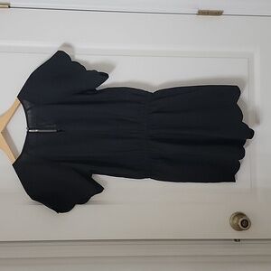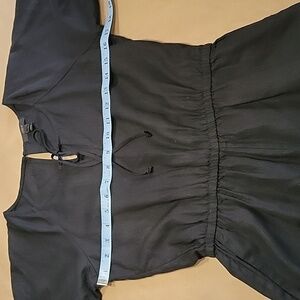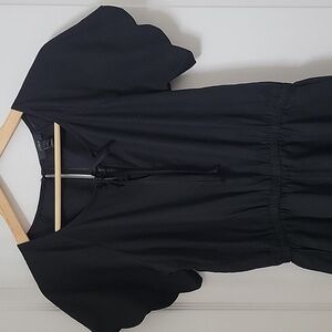 J. Crew Size XXS Black Scalloped Trim Shorts Romper, Linen Blend, Exc. Used Condition. No Holes, Rips, Stains or Snags. Lightweight, Breathable Linen Blend Scalloped Trim Black Romper. Can be dressed up or down. Elasticized Waistband with Drawstring/Tie. Short Sleeved. Front Slant Pockets. Rounded Neckline with Notch and Tie.