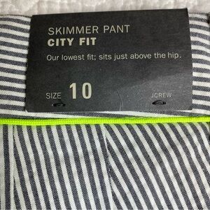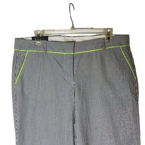 J. Crew seersucker skimmer pant city fit. These are gray and white seersucker with neon green piping around waist and front pockets for added style points!