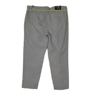 J Crew Skimmer Cropped Pants Size 10 City Fit Gray White Seersucker Neon Tipped