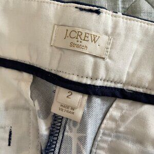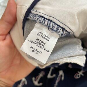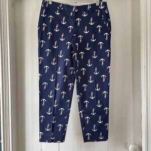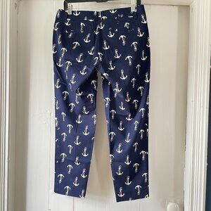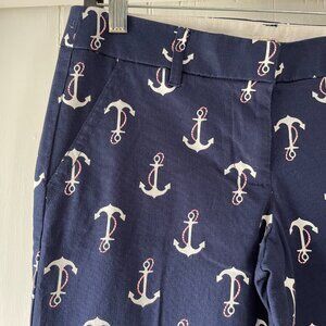 J. Crew Skimmer Pants Womens 2 Navy Blue Straight Anchor Print Stretch Chino EUC