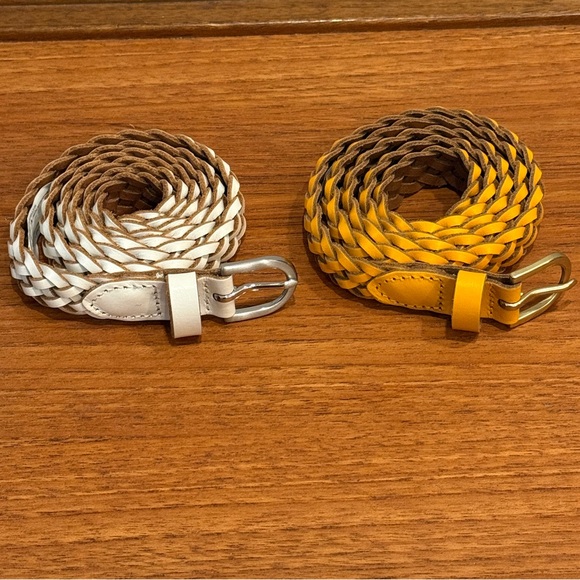 J Crew Skinny Braided Leather Belt in White/Sweet Marigold, size S/M, Set of 2. No tags, but both are brand new.