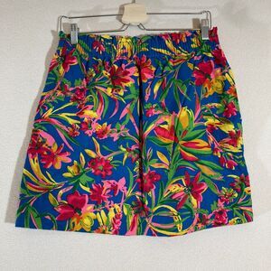 J Crew Skirt Sz 8 Tropical Floral Linen Elastic Waist Pockets Lined Resort Wear