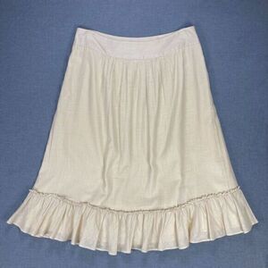 - Description: J. Crew Skirt Womens Size 4 Beige Flare Ruffle Hem Mid Rise Side Button Up Midi