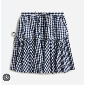 J. Crew Skirt Womens Small Blue White Gingham Check Tiered Ruffle Mini Elastic