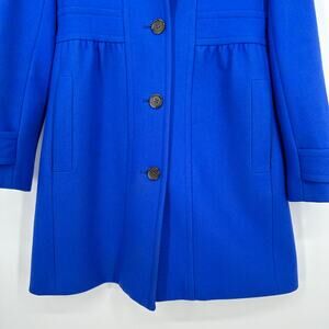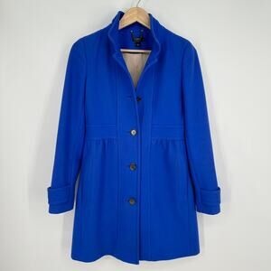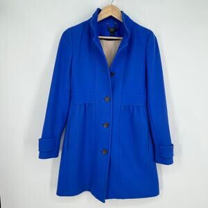 J. Crew Lady Day Skirted Dress Coat Button Front Long Wool Blend Peacoat Jacket Blue