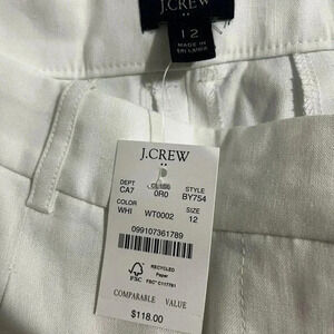 J Crew Slacks White Linen Blend White Wide Leg Trouser NWT Size 12 Pleated Pant
