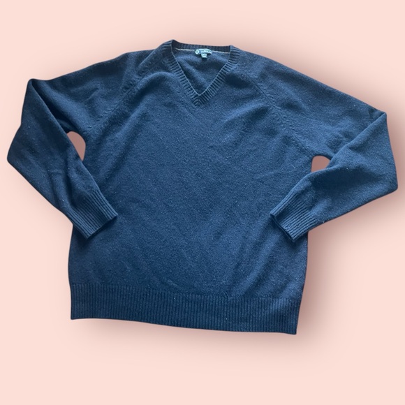 Soft and lightweight J Crew slate blue sweater. There is 2 small holes on left sleeve (under the wrist) still a great sweater, add a button down under it or a turtleneck. There are plenty of pants in our inventory that would go great with this sweater!