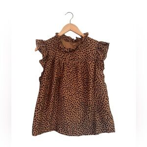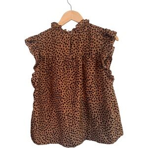 J Crew Sleeveless Animal Print Ruffle Front Casual Top- size large