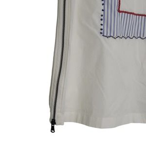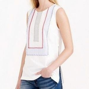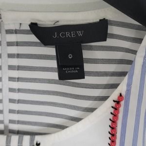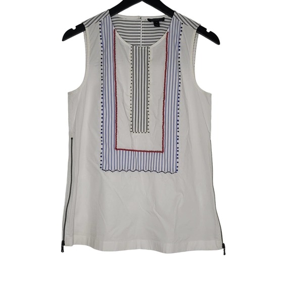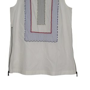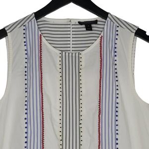 J Crew Sleeveless Beaded Tunic Top 0 White Blue Stripe Side Zip Round Neck Boho