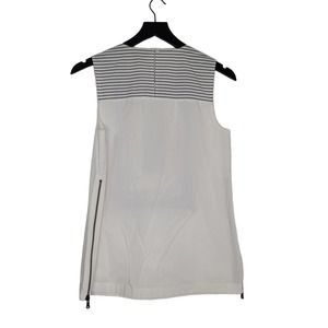 J. Crew Sleeveless Top Sz 0 White Beaded Stripe Side Zip Keyhole Back Round Neck