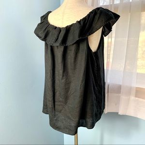 J. Crew Sleeveless Black Linen Ruffle Neck Top