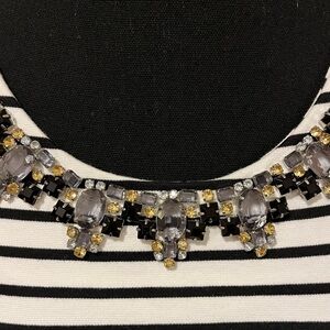 J Crew Sleeveless Black & White Striped Tank Top w/ Embellished Neckline, Small