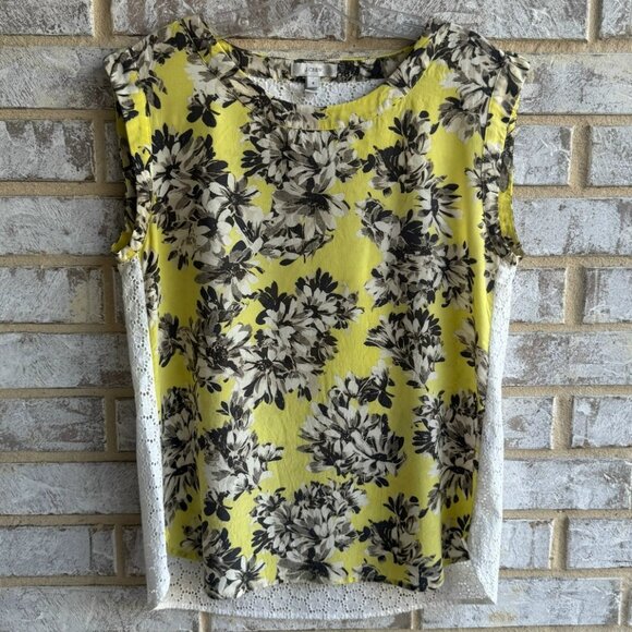 J. Crew Sleeveless Eyelet Cotton Back Floral Silk Front Blouse Women's Size 8