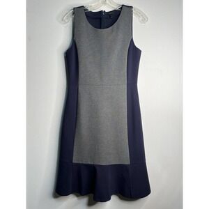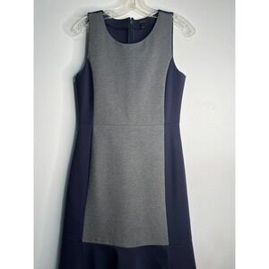 J Crew Sleeveless Fit n Flare Dress Size 4 Two Tone Blue Gray Zipup Back Stretch