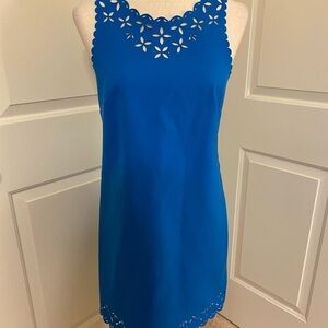 J Crew Sleeveless Laser Cut Stretch Dress Blue Size 4P