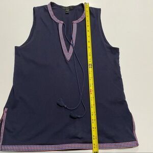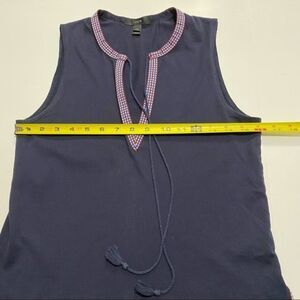J. Crew Sleeveless Navy Top - XXS - Ribbon Trim - Deep V Neck