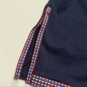 Adorable deceptively simple top in a navy color (nice and dark - lights in some photos make it look lighter) with a ribbon trim detail.