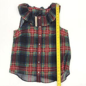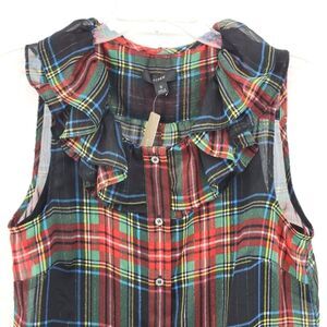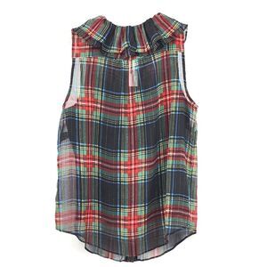 J Crew Sleeveless Ruffle Collar Top Womens Small Black Stewart Tartan Plaid