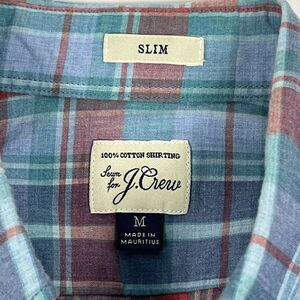 J Crew Slim 100% Cotton Shirting Blue Plaid Long Sleeve Button Shirt Men Medium