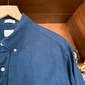 J. Crew slim fit shirt in dark blue linen. Elegant and versatile.