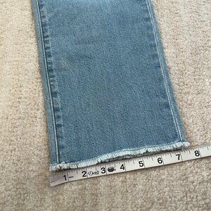Light blue slightly distressed crop boyfriend jeans. Denim has some stretch