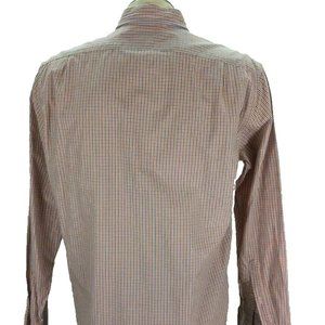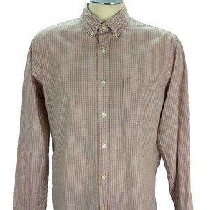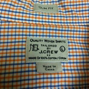 J Crew Slim Fit Button Down Shirt L Orange Blue White Plaid Mens
