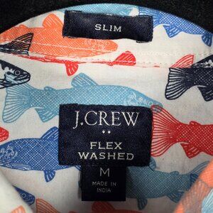 J Crew Slim Fit Colorful Fish Flex Washed Mens Medium Short Sleeve Button Shirt