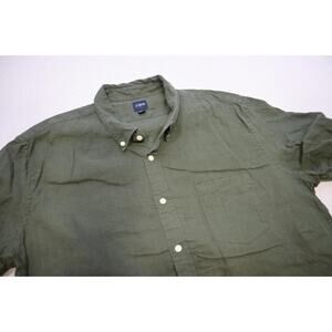 J Crew Slim Fit Dress Shirt Linen Blend Green Short Sleeve Mens Sz 2XL XXL
