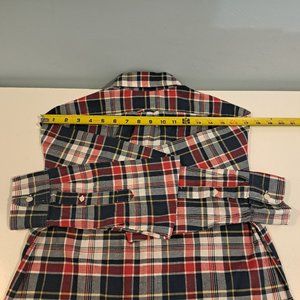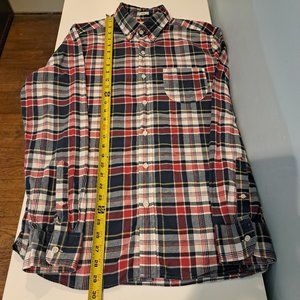 J. Crew Slim Fit Men's M Long Sleeve Button Down 100% Cotton Shirt Style #F1268. 100% cotton. Button down collar. Single chest pocket. Blue, red, yellow and white plaid. Shirt is in excellent used condition. Please see photos for details and measurements. This is a slim fit shirt.